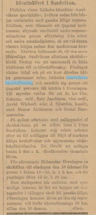 “Sandvikens IF grundades genom en sammanslagning av två klubbar som fanns före 1899, men som försvinner i och med sammanslagningen, och sen finns det gott omnämnanden i pressen om Sandvikens IF och deras verksamhet.”